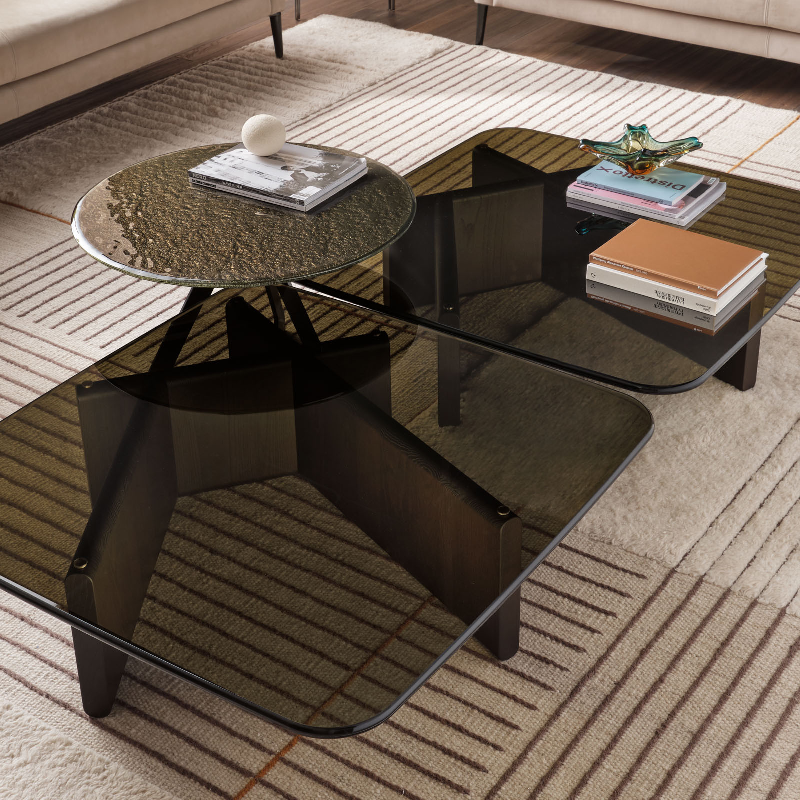 Il tavolino Type di Fiam Italia, disegnato da Patrick Norguet, rappresenta un perfetto equilibrio tra estetica e funzionalità. La base, realizzata in legno massello con linee asimmetriche, conferisce al tavolino un aspetto scultoreo e moderno. Il piano, disponibile in vetro fumé o bronzo, aggiunge un tocco di eleganza e raffinatezza. Le dimensioni disponibili — 80 x 35 x h 50 cm, 73 x 73 x h 40 cm e 100 x 100 x h 30 cm — permettono di scegliere la soluzione più adatta alle proprie esigenze. Le finiture della base, in legno tinto nero o tabacco, offrono versatilità, permettendo al tavolino di integrarsi armoniosamente in diversi ambienti e stili d’arredo.